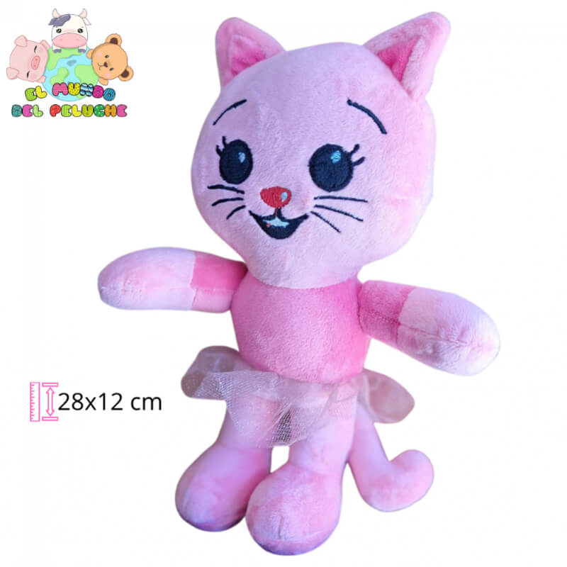 Gatita Meili Mundo Plim Plim | Peluche Rosa Suave con Faldita de Tul | 28x12 cm | El Mundo del Peluche