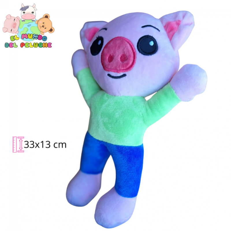 Peluche Huggie Cerdito Mundo Plim Plim 33x13 cm. Suave, colorido y educativo. Ideal para regalo o venta de peluches al mayoreo en México.
