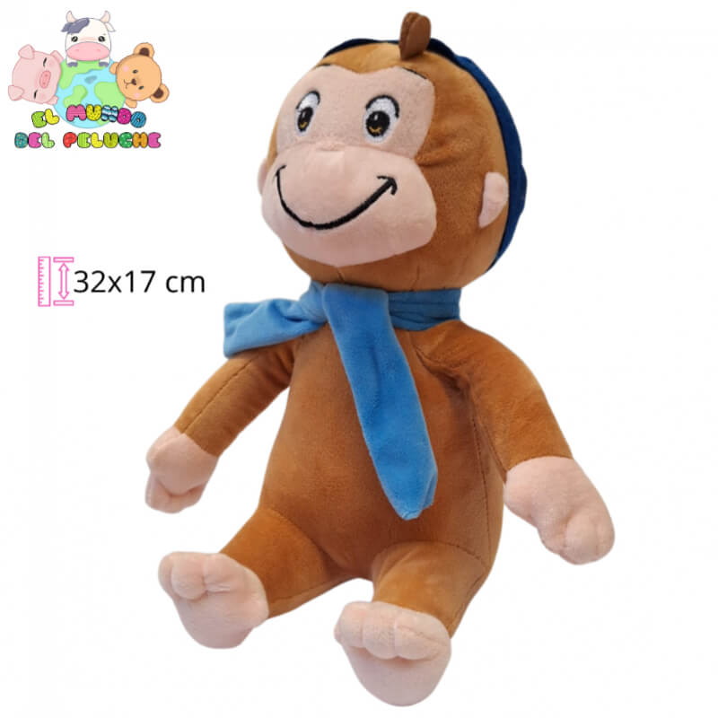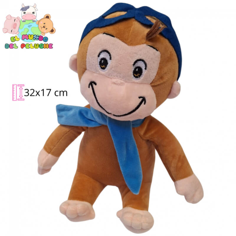 Jorge el Curioso | Peluche Aventurero con Bufanda Azul | 32x17 cm | El Mundo del Peluche